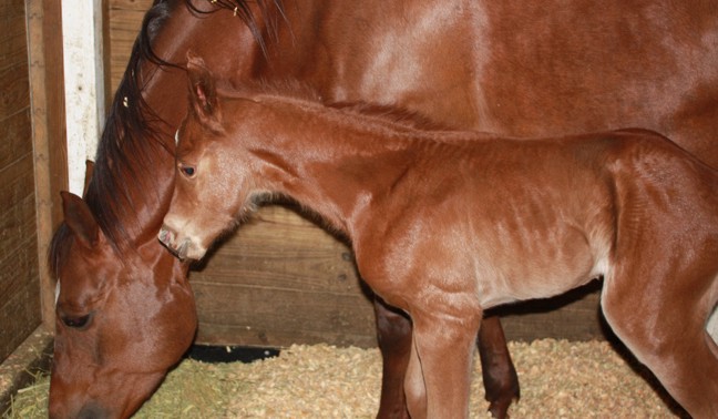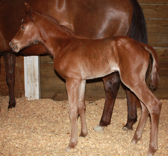 Born 2/19/2010 AQHA Chestnut Filly HYPP N/N Sire: Invest In My Pizzazz Dam: Shesa Statuette (by Statutory)
