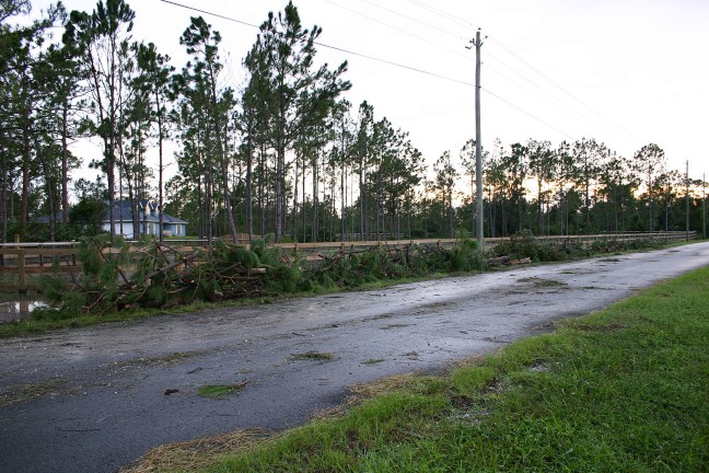 This is only about 1/8th of the pines that are scattered all over the yard. That is a length of at least 200-250 feet along the road with pine branches and trees that came down during the storm.