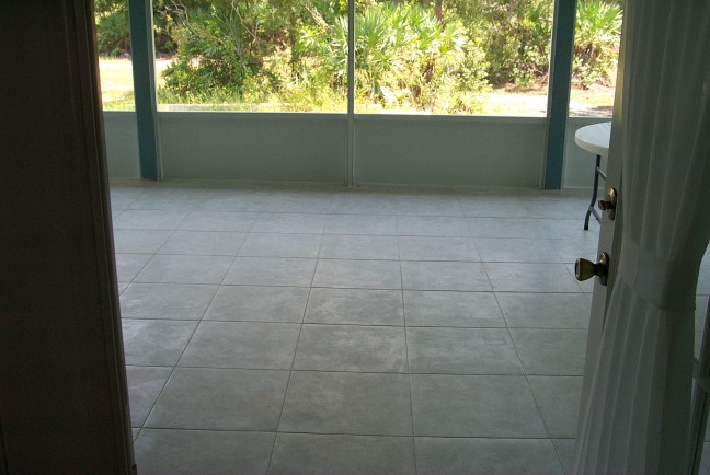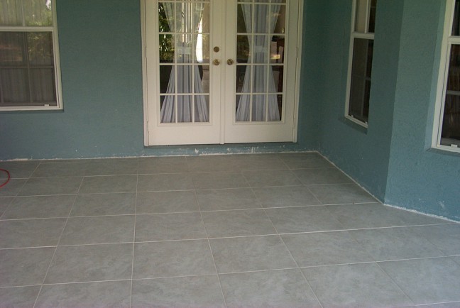 back patio tile looking towards french doors